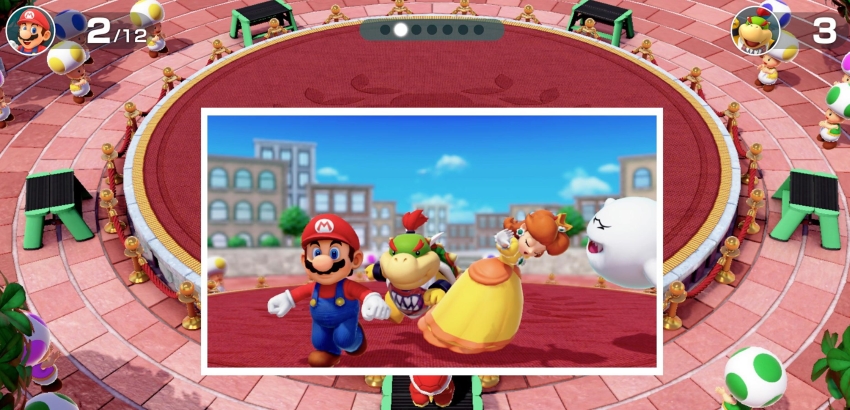L’absurdité, mais aussi l’immense compétitivité des mini-jeux en apparence simples créent un plaisir instantané. Par exemple, tu dois cuire un steak carré le plus rapidement possible ou se tirer la bourre pour te rapprocher le plus possible d'un paparazzi. Mais qu'est-ce qui a changé alors? Nintendo a écouté attentivement les critiques et redonne à ce Super Mario Party la rapidité nécessaire. La mise à niveau graphique mérite également une mention honorable.