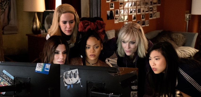 Et donc après les braquages étincelants de Ocean's 11, 12 et 13, c'est à Debbie Ocean (Sandra Bullock) de s'entourer d'une équipe entièrement féminine (Cate Blanchett, Rihanna, Helena Bonham Carter, …) pour tenter de dérober un collier d'une valeur de 100 millions de dollars. Un film de casse traditionnel mais quelque peu bling-bling, bien dans l'air du temps.